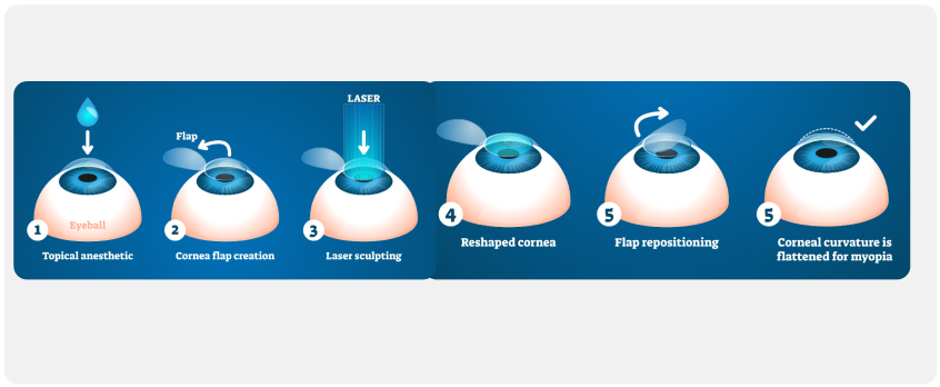 LASIK is performed using cutting-edge laser technology and typically takes less than 15 minutes for both eyes. Step-by-step: